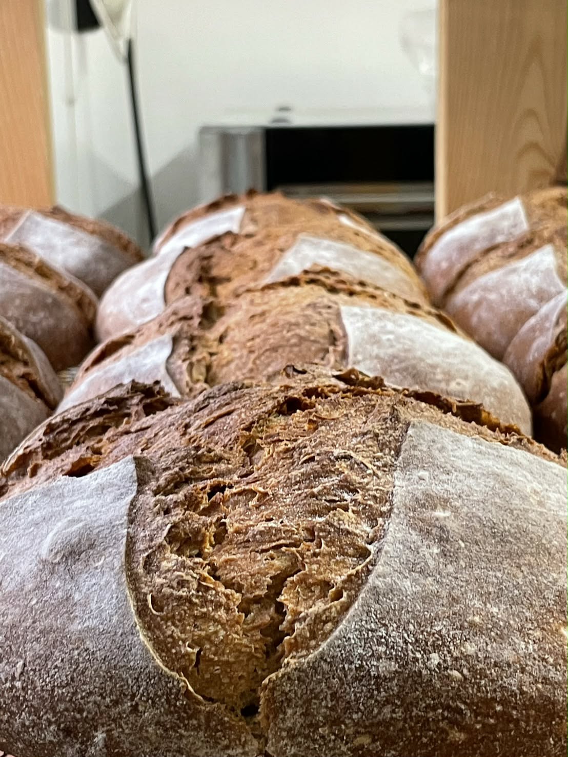 南部小麦全粒粉(自家製粉)、コユキ小麦、ライ麦(全粒粉)